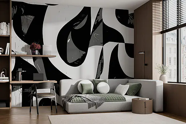 Carta da parati Carta da parati Immagine in bianco e nero di un motivo a vortice (COD: w00964)