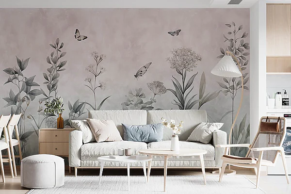 Carta da parati Carta da parati Carta da parati con farfalle e piante (COD: w08757)