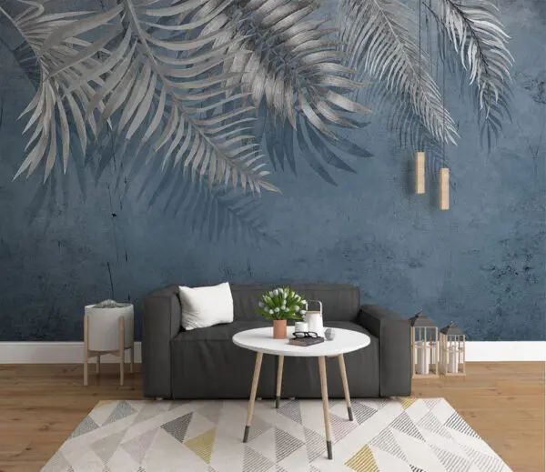 • Sconto -40% Carta da parati Carta da parati Sfondo blu con foglie d'argento (COD: u18312)