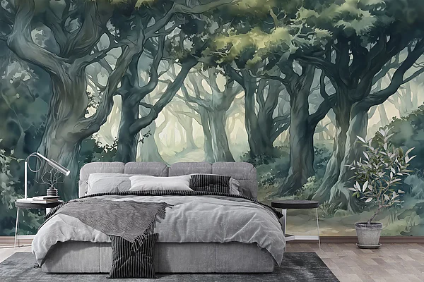 Carta da parati Carta da parati Un paesaggio di montagne con alberi (COD: w00339)