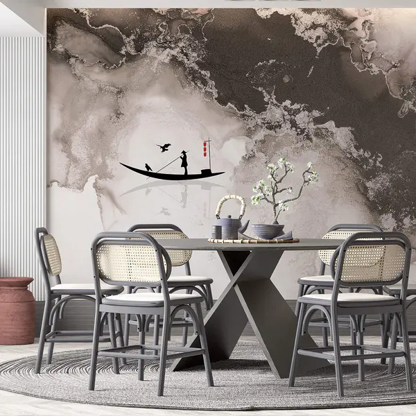 Oriente Lontano Carta da parati con motivi orientali Aura zen e sofisticazione culturale. Colori armonici. Ambienti di meditazione e relax
