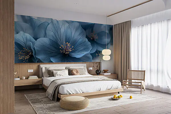• Sconto -40% Carta da parati Carta da parati Fiori blu su una superficie bianca (COD: w01413)