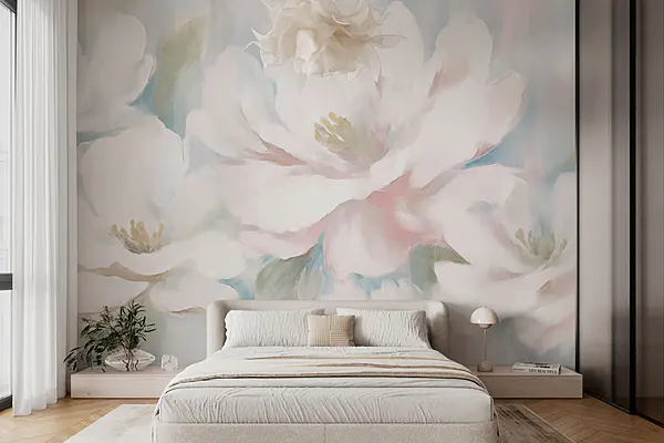 Carta da parati Carta da parati Pittura di fiori bianchi (COD: w03188)