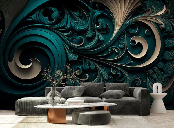 Carta da parati 3D Effetto tridimensionale per un soggiorno moderno e dinamico