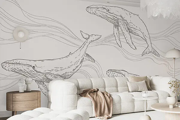 Carta da parati Carta da parati Un gruppo di balene che nuota nell'acqua (COD: u99733)