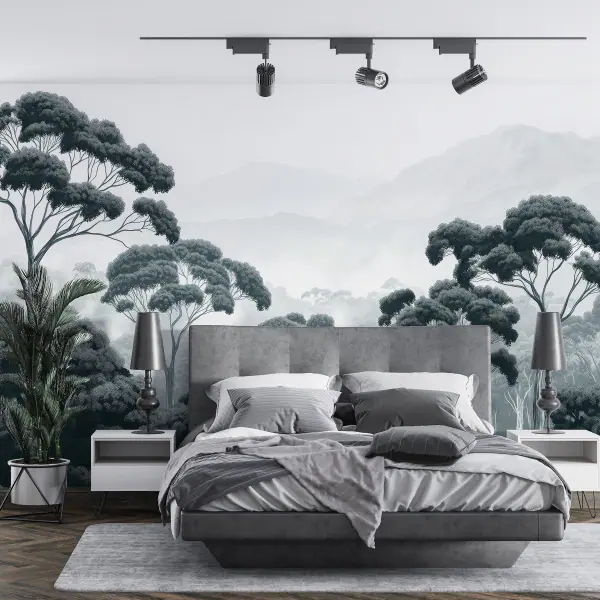 15.49 €9.30 €Carta da parati Foresta nebbiosa con alberi e uccelli