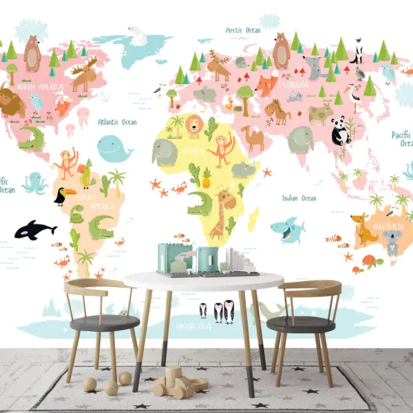 16.32 €9.80 €Carta da parati Una mappa del mondo con animali e palloncini
