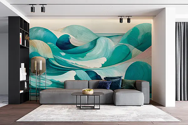 Carta da parati Carta da parati Onde turchesi si scontrano in un caos artistico (COD: u05875)