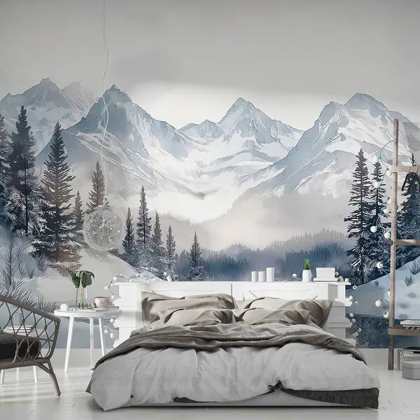 | Panoramica delle Montagne | Carta da parati panoramica, materiale opaco | Hall, ufficio di rappresentanza | Impatto visivo forte e artistico |