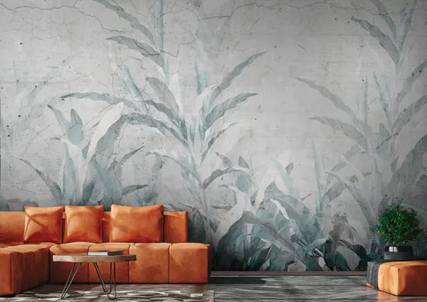 15.49 €9.30 €Carta da parati Gruppo di foglie verdi su sfondo grigio