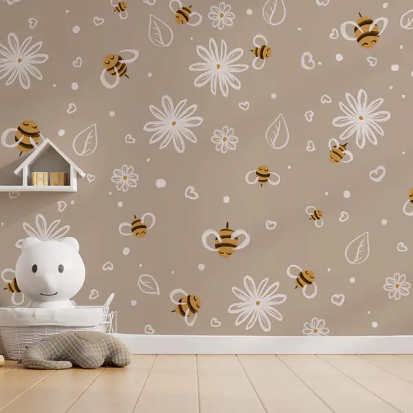 Carta da parati Motivo di api e fiori