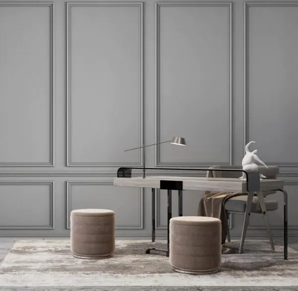 Boiserie Grigia Contemporanea | Minimal chic | Contrasto moderno, elegante e neutrale | Ufficio, open space |