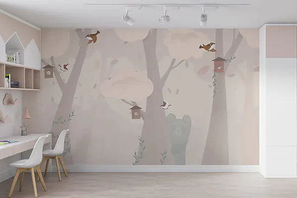 15.52 €9.31 €Carta da parati Un cartone animato con un orso e degli uccelli in una foresta
