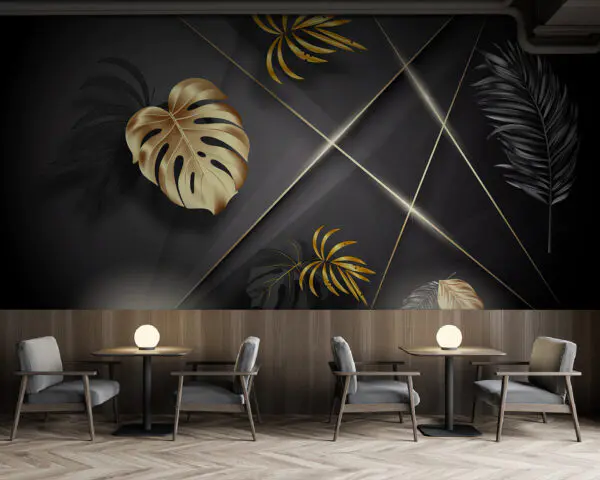 16.32 €9.80 €Carta da parati Eleganti foglie metalliche su sfondo scuro