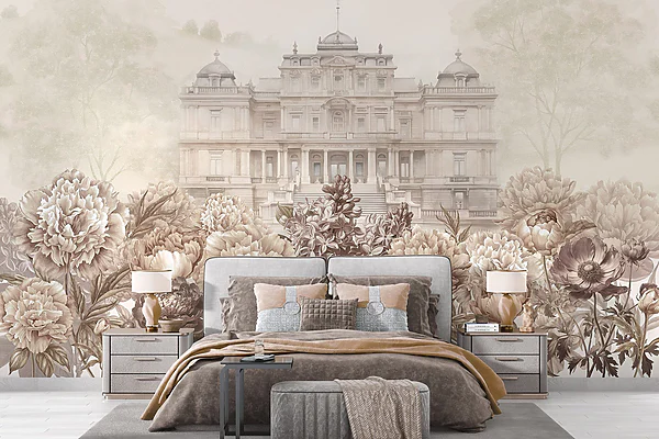 16.32 €9.80 €Carta da parati Grande edificio bianco con fiori
