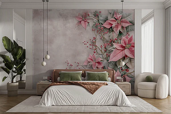 16.32 €9.80 €Carta da parati Fiori e bacche rosa su una superficie bianca