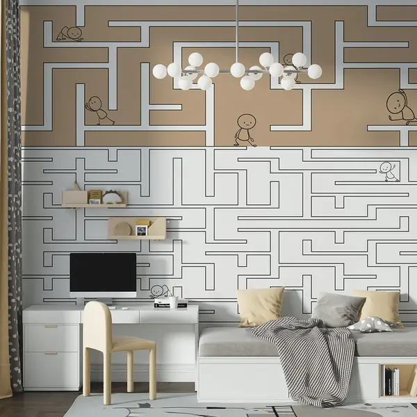 Carta da parati Carta da parati Gioco del labirinto con persone che camminano sul muro (COD: w03873)
