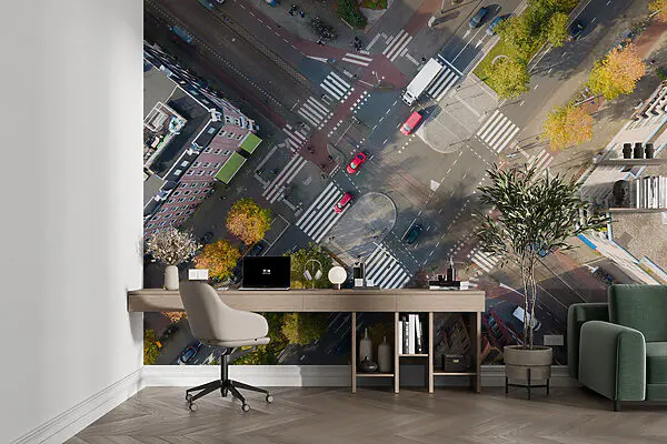 Carta da parati Carta da parati Vista aerea di un incrocio stradale con auto ed edifici (COD: u98641)