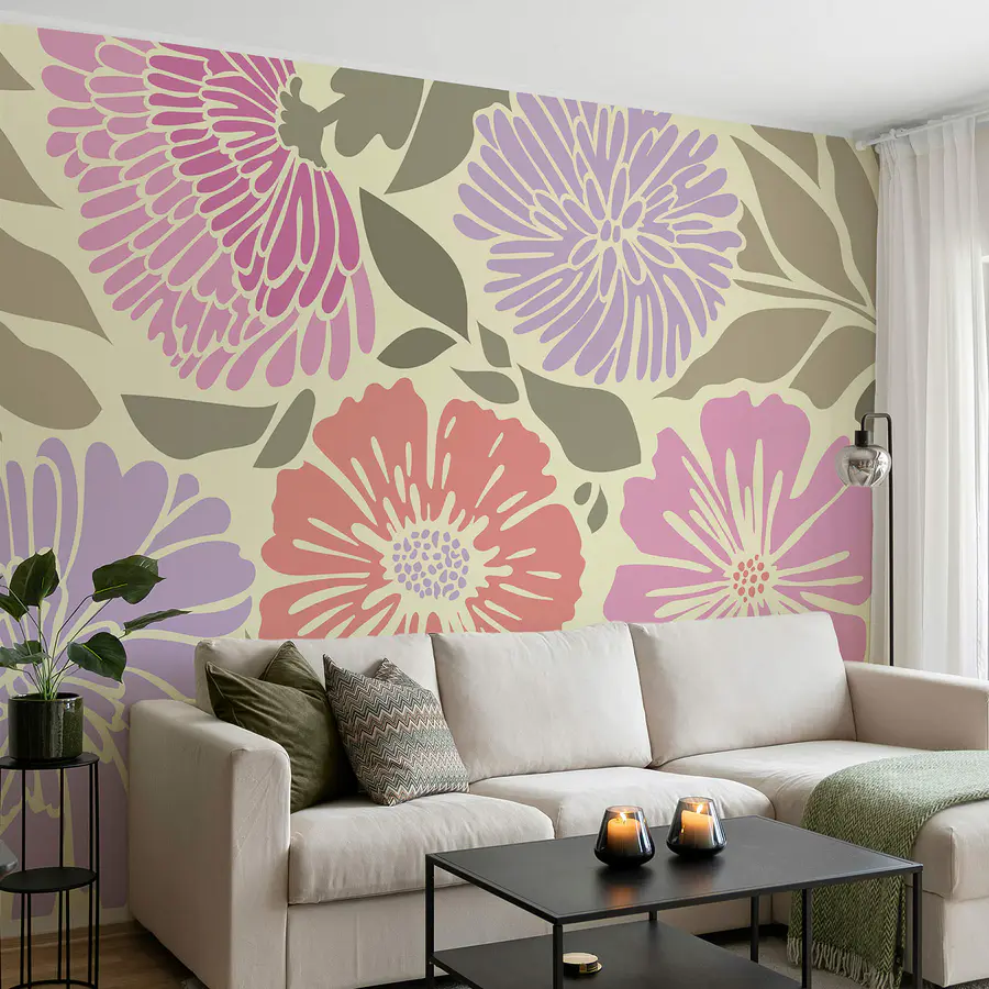 Trasformate qualsiasi spazio con questo vivace murale, caratterizzato da un vivace motivo floreale che vi farà sentire come se foste entrati in un tranquillo giardino. Immaginate di svegliarvi ogni mattina circondati da questi fiori giocosi nei toni tenui del lavanda e del blush: è come un allegro abbraccio per le vostre pareti! Perfetto per un salotto accogliente o una cucina luminosa, questo murale porta un po' di natura all'interno, creando un'atmosfera rinfrescante. È destinato ad accendere la gioia e forse anche a ispirarvi a iniziare l'hobby delle composizioni floreali a cui stavate pensando. Con questo splendido sfondo, ogni giorno sembrerà un giorno di primavera, e chi non ha bisogno di una spruzzata di colore nella propria vita? Abbracciate la bellezza dei fiori senza bisogno di innaffiare!