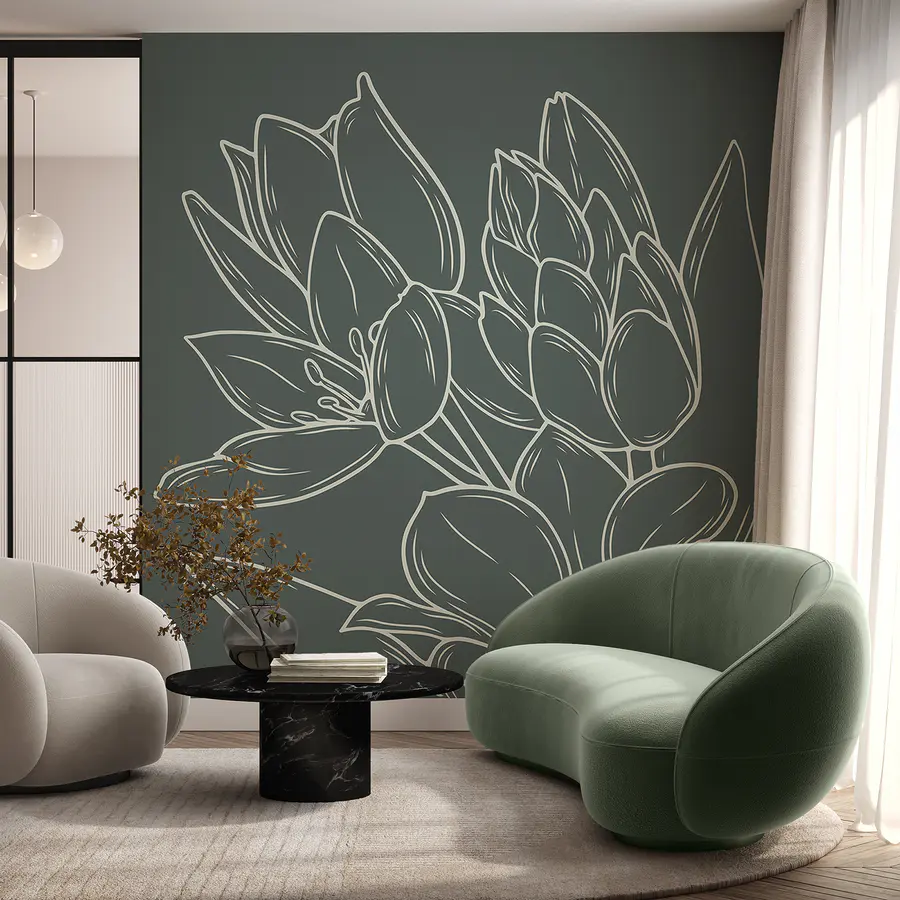 Trasformate il vostro spazio con questo splendido murale con un bellissimo disegno di fiori su una pianta. Perfetto per chi desidera un tocco di natura in casa senza dover innaffiare o esporre alla luce del sole. Immaginate di entrare in una stanza e di sentirvi come in un giardino sereno, senza bisogno del pollice verde! Il design semplice ma elegante aggiunge un tocco di modernità che lo rende un ottimo spunto di conversazione. Che si tratti di un accogliente salotto o di un ufficio chic, questo murale ravviva l'atmosfera senza sforzo. Immaginate gli sguardi curiosi e i piacevoli complimenti degli amici. È come dare alle vostre pareti un vestito nuovo che indosseranno per gli anni a venire. Chi non lo vorrebbe?