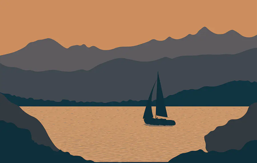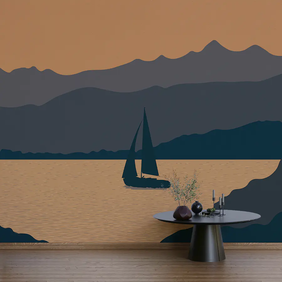 Carta da parati Barca a vela sull’acqua con montagne sullo sfondo