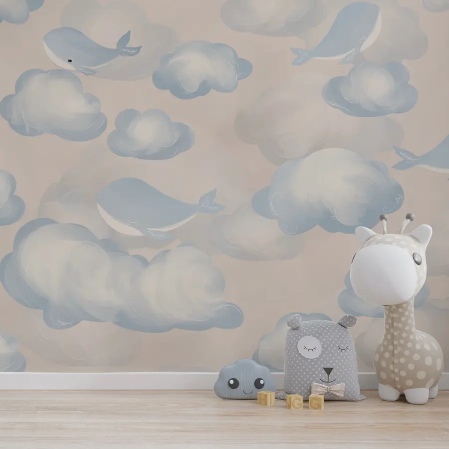 Carta da parati Nuvole blu e bianche e balene