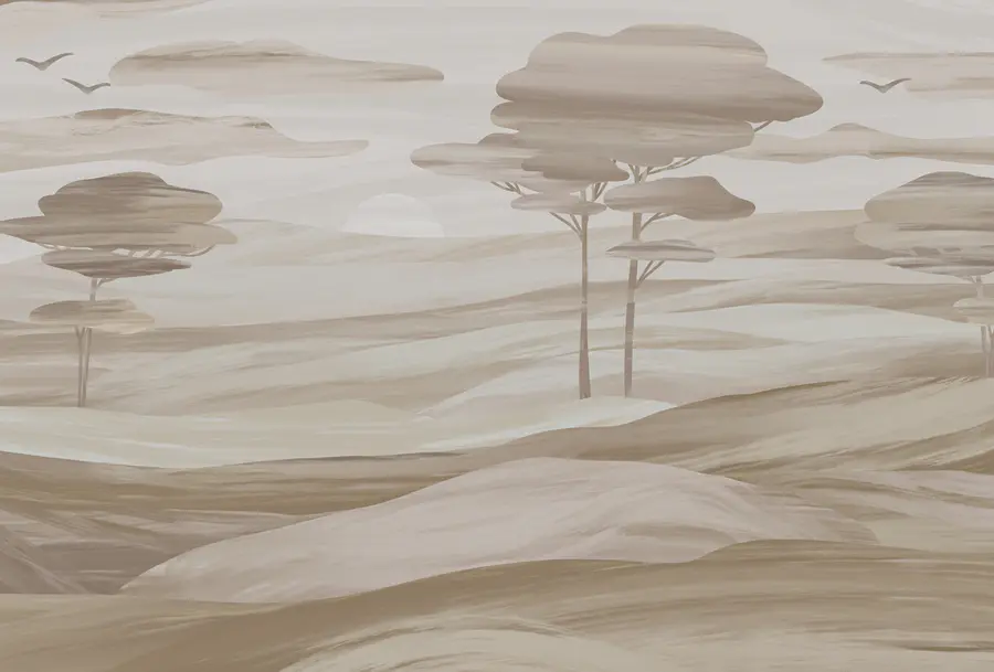 Carta da parati Paesaggio con alberi e colline