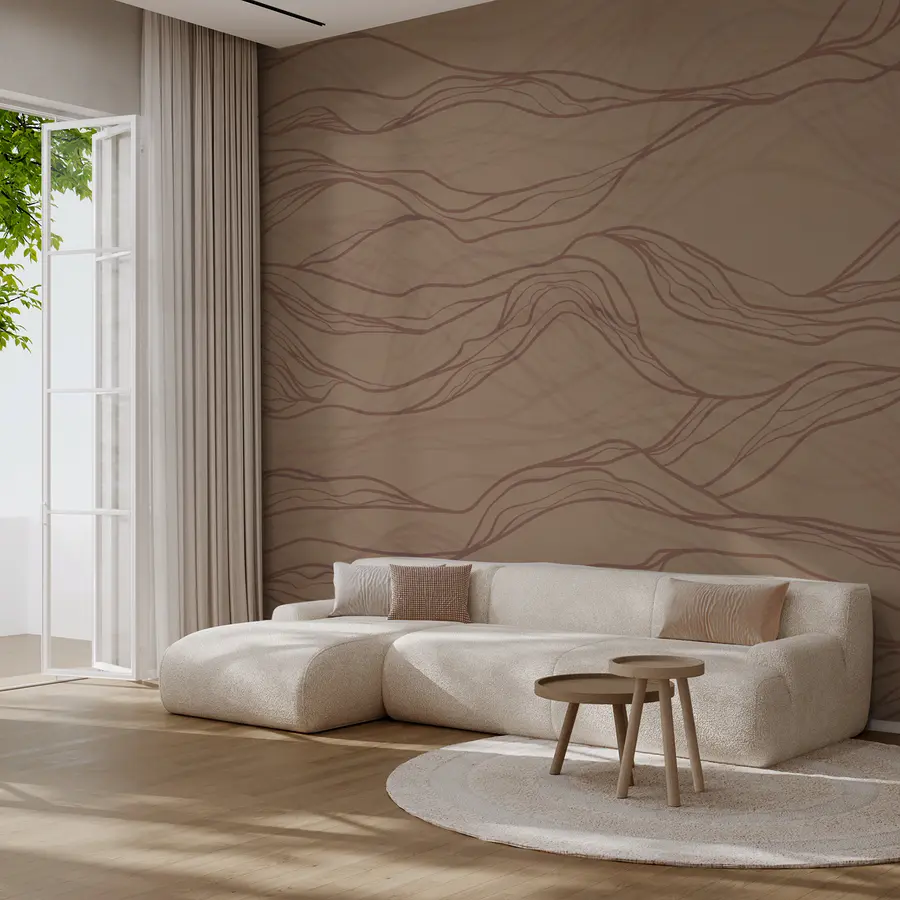 Carta da parati Linee ondulate marroni su una superficie abbronzata