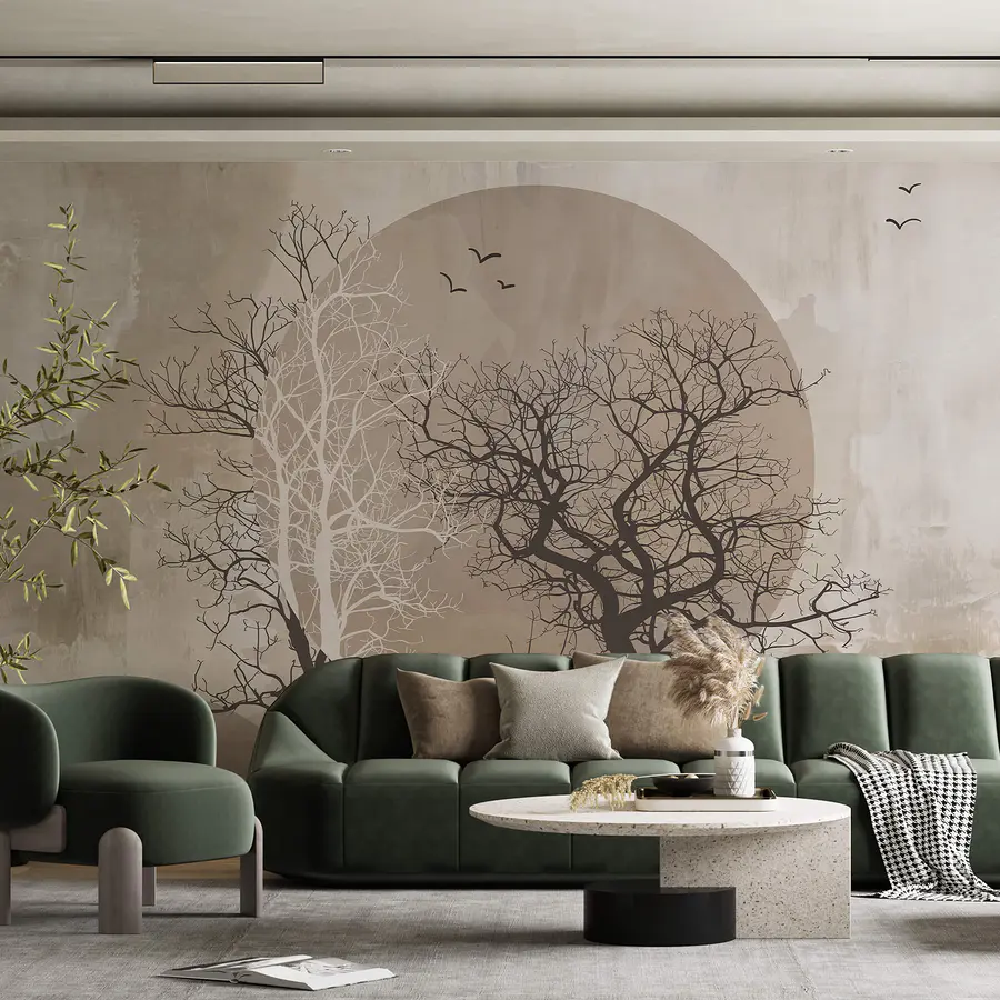 Carta da parati Pittura di alberi e sole