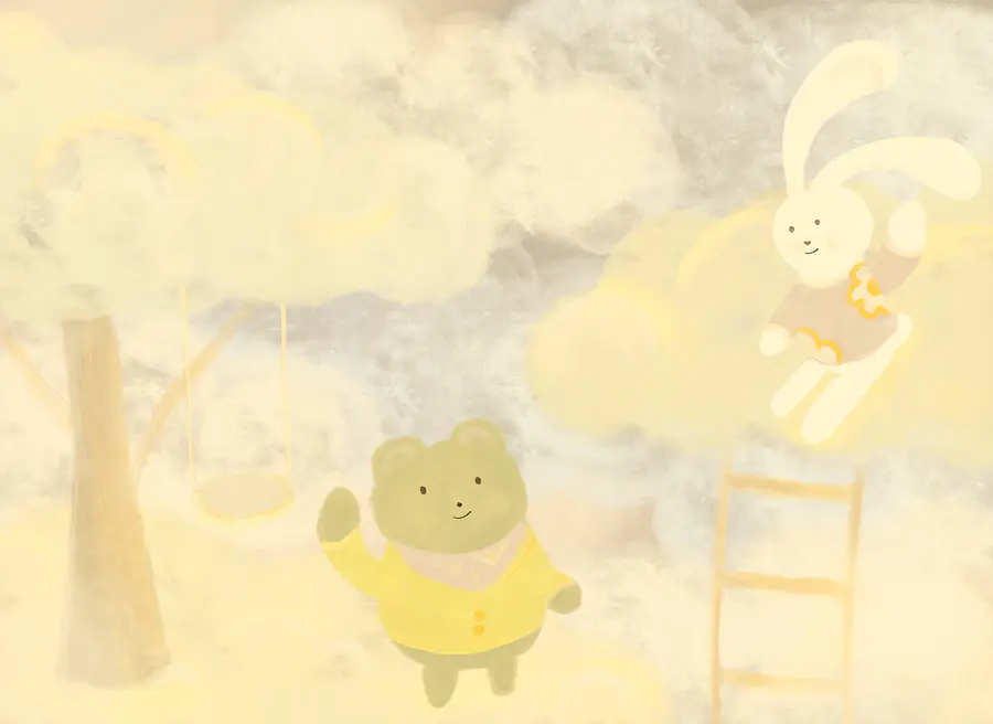 Carta da parati Orso e coniglietto dei cartoni animati tra le nuvole