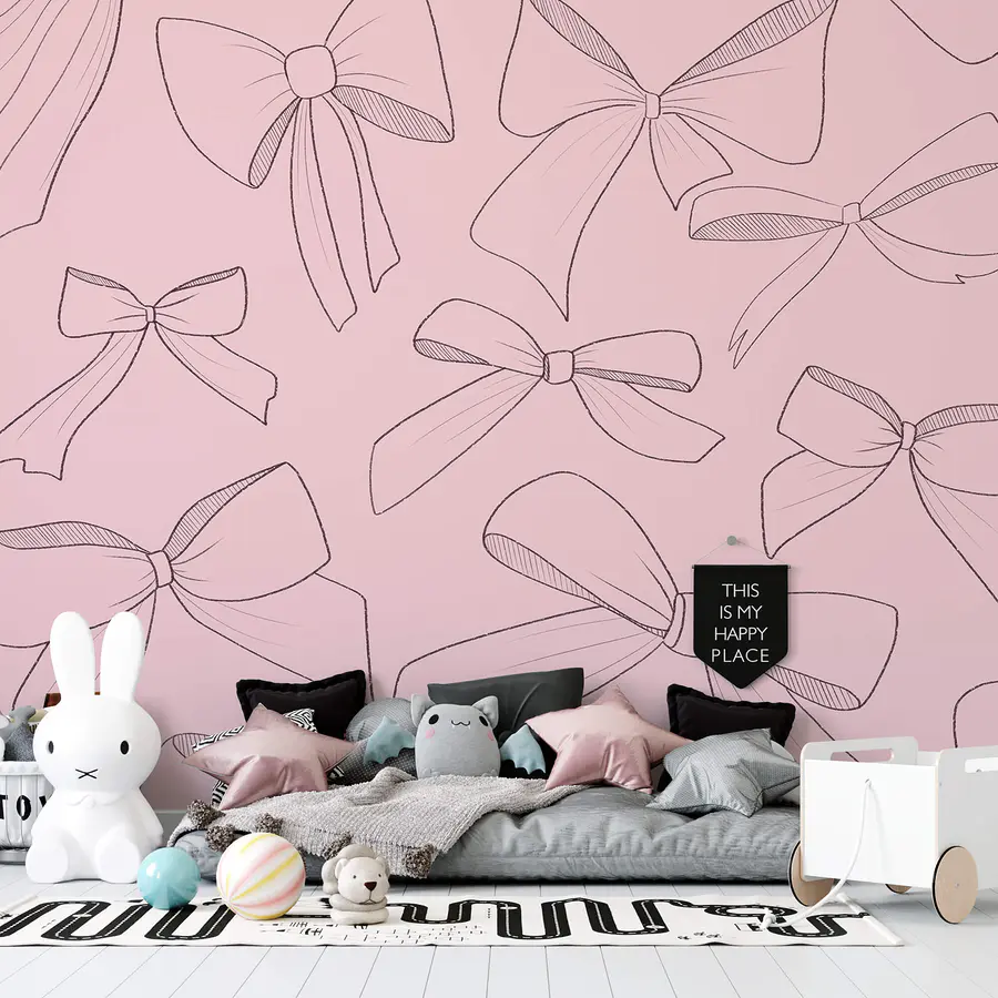 Carta da parati Motivo di fiocchi su sfondo rosa