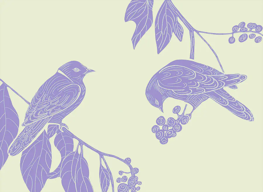 Carta da parati Disegno di uccelli su un ramo