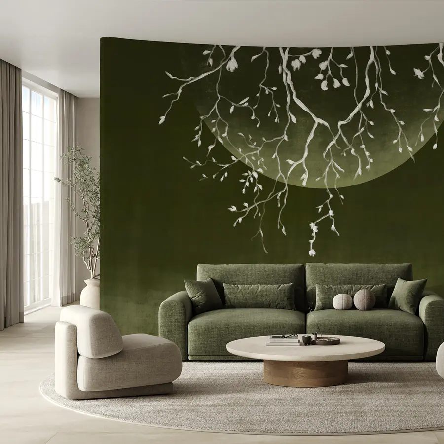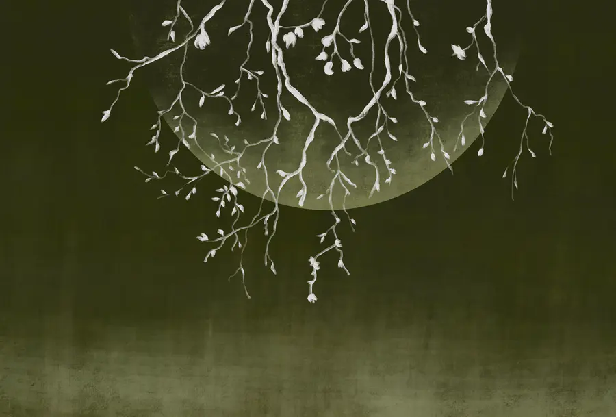 Carta da parati Rami di alberi con foglie e luna