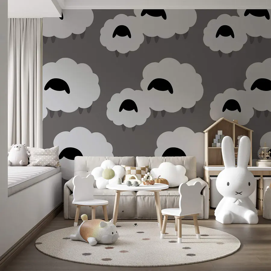 Carta da parati Gruppo di nuvole bianche con pecora nera