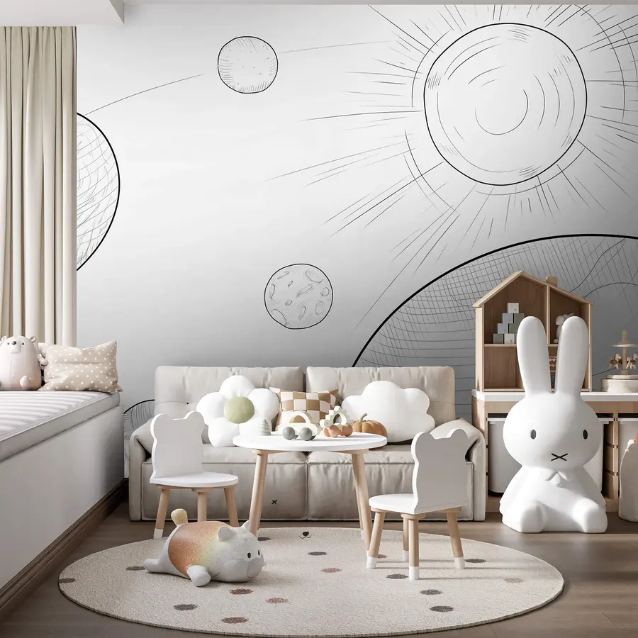 Carta da parati Disegno dei pianeti e del sole