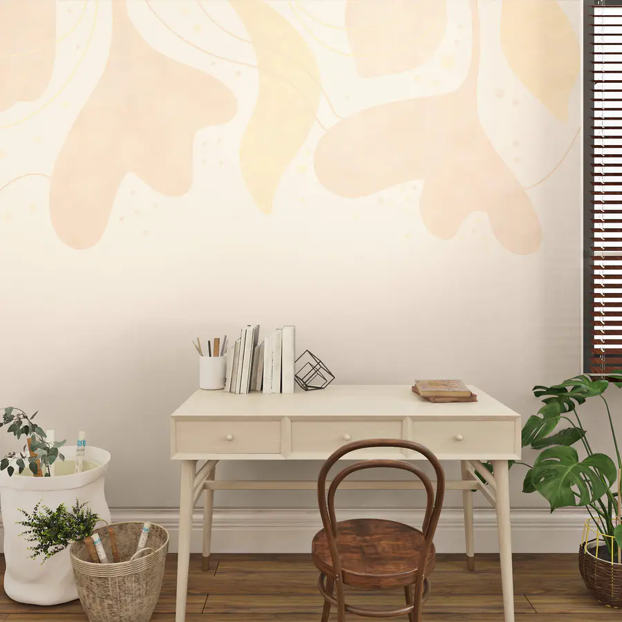 Carta da parati Delicate foglie color pastello su uno sfondo morbido