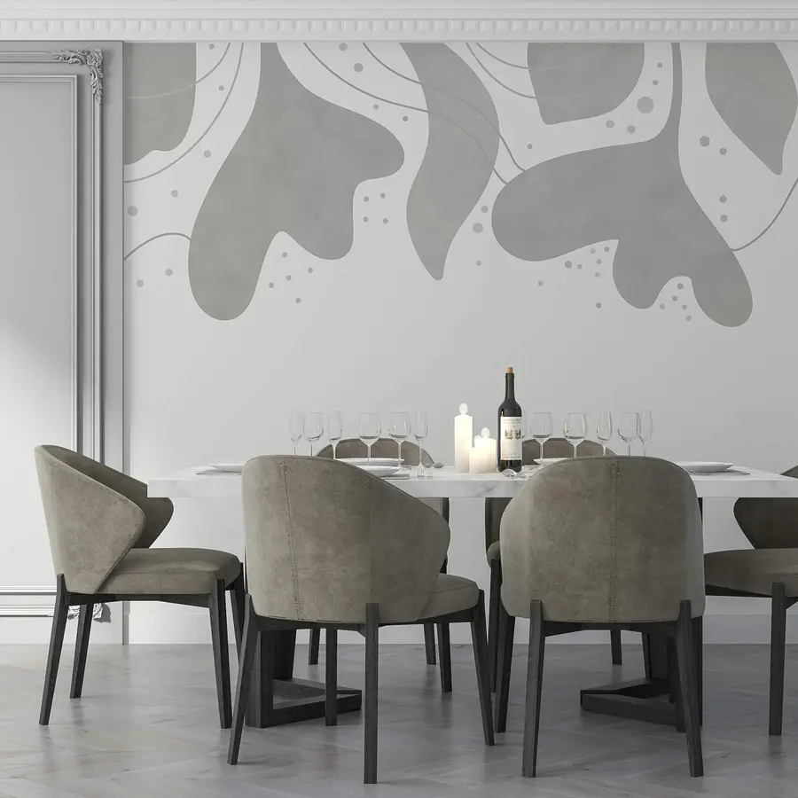 Carta da parati Sfondo grigio e bianco con foglie