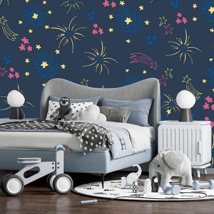 Carta da parati Motivo di fuochi d’artificio e stelle