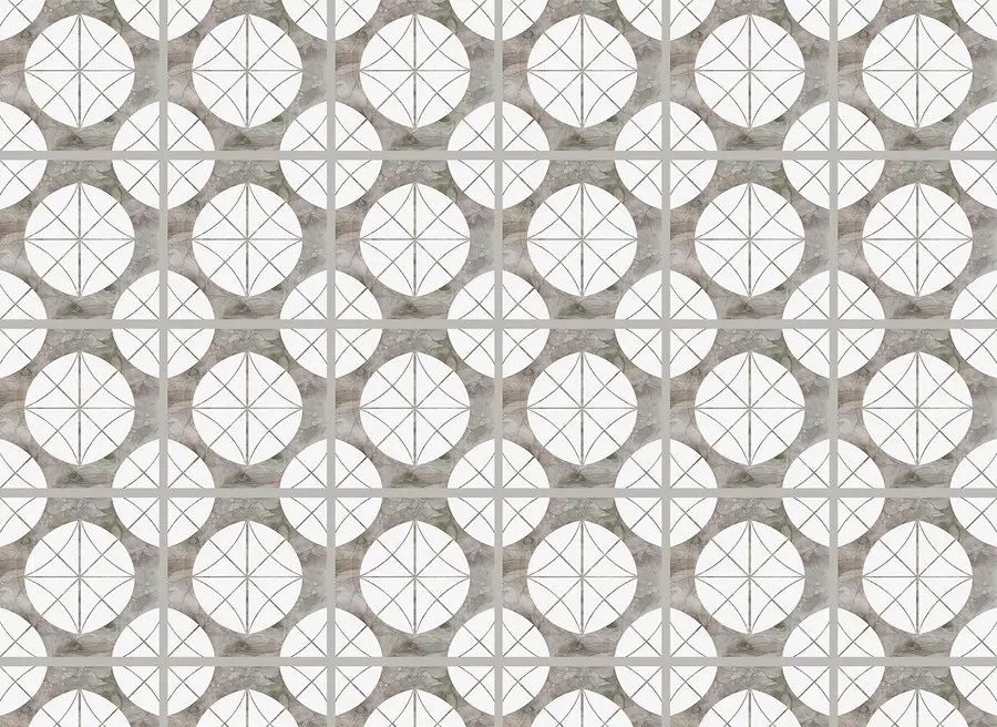 Carta da parati Motivo di cerchi bianchi e quadrati grigi