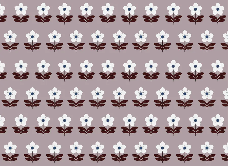 Carta da parati Motivo di fiori bianchi e foglie marroni