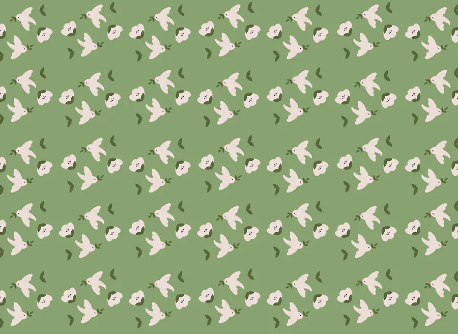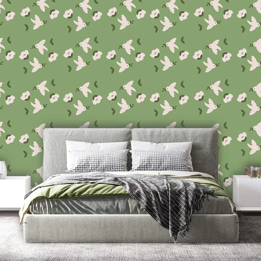 Carta da parati Motivo di uccelli bianchi e foglie verdi