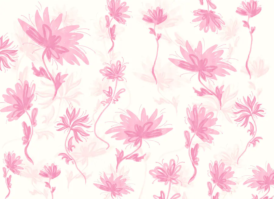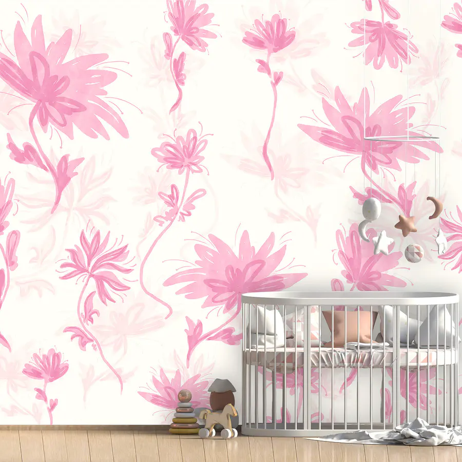 Carta da parati Fiori rosa su sfondo bianco
