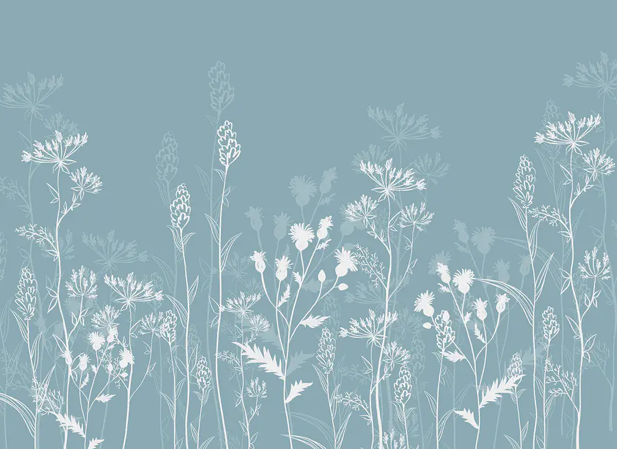 Carta da parati Fiori bianchi su sfondo blu