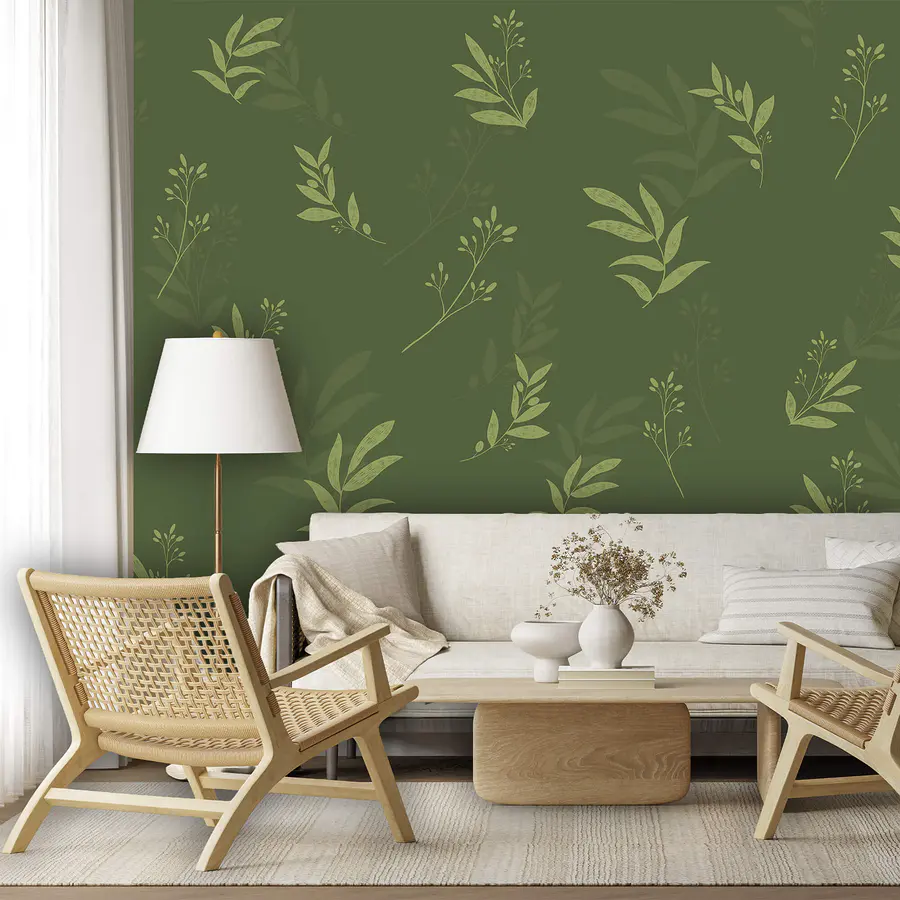 Carta da parati Motivo di foglie su sfondo verde