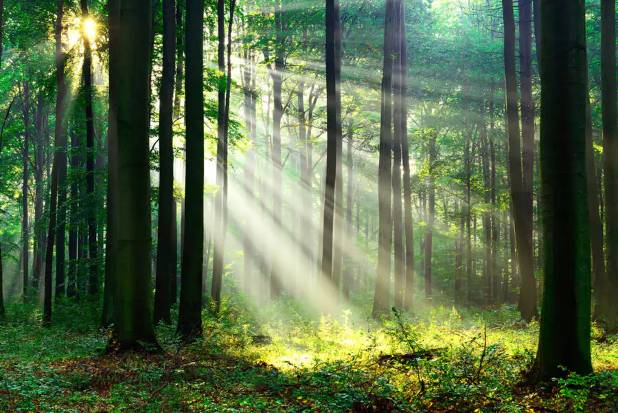 Carta da parati La luce del sole che illumina gli alberi