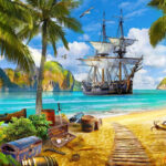 Carta da parati Pittura di una nave su una spiaggia