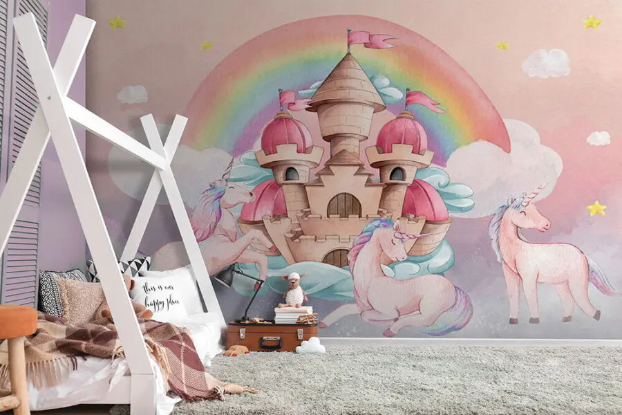 Carta da parati Unicorni e un castello