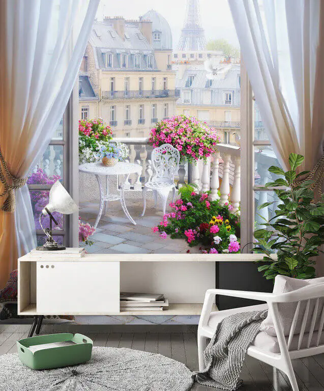 Immaginate di svegliarvi e di aprire gli occhi su un balcone parigino, dove la Torre Eiffel si staglia leggiadra in lontananza. Questo splendido murale - "Balcone con vista sulla Torre Eiffel" - offre proprio questo, a casa vostra. Vi avvolge in un paesaggio urbano da sogno, pieno di fiori in fiore e di architettura classica europea. Quelle delicate tende che svolazzano nella brezza! È come se aveste il vostro pezzo di Parigi personale che aggiunge un tocco di romanticismo e avventura al vostro spazio. Un ottimo spunto di conversazione. Perfetto per chi ha sempre sognato di fare colazione con vista sulla Torre Eiffel, senza il jet lag! Se state cercando di rinnovare il vostro salotto, la camera da letto o anche l'ufficio, questo murale vi trasporta in un mondo affascinante dove ogni alba sembra una nuova avventura.