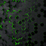 Carta da parati Esagoni neri con luci verdi