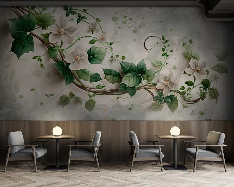 Carta da parati Pittura di fiori e foglie
